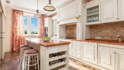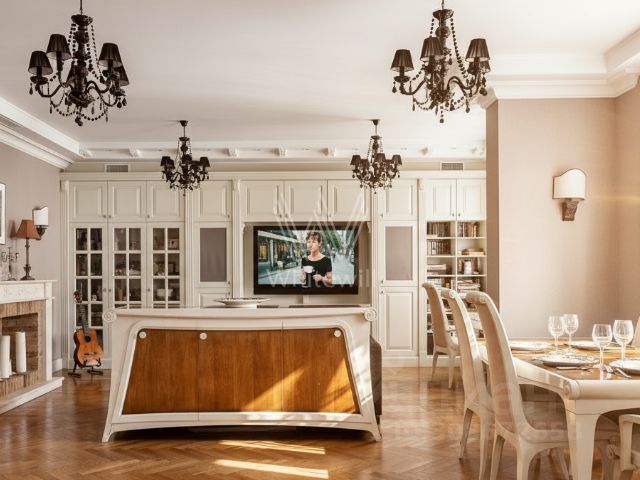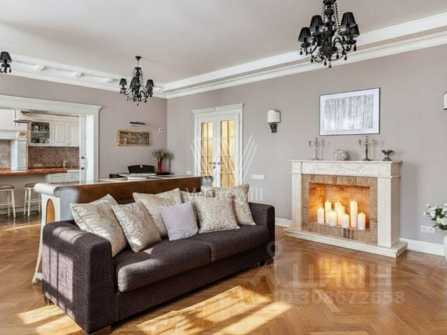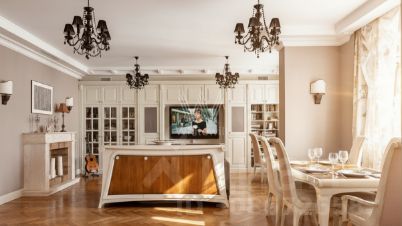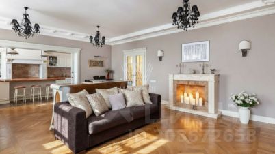 Функциональная планировка: гостиная 44 м² со столовой зоной, кухня 20 м² с островом, мастер-спальня 20 м² с гардеробной 4 м², санузел 18 м² с сауной и джакузи, детская спальня 20 м², гостевая спальня 17 м², просторный холл 28 м², гостевой санузел. Все спальни выходят на застекленную лоджию площадью 12 м². Выполнен дизайнерский ремонт с использованием премиальных материалов: дубовый паркет, столешница из мрамора, плитка Emperador, тиковое дерево, ванна в мраморных слэбах с отделкой деревянными панелями и плинтусами, душевая кабина из мрамора. Установлена сплит-система кондиционирования, на кухне встроенная техника Miele, в холле — встроенные шкафы, библиотека. Из окон открываются виды на две стороны света: на парк Ходынское поле с прудами и панорамный вид в сторону Сити и парка Березовая роща. Есть возможность арендовать парковочное место в подземном, охраняемом паркинге.