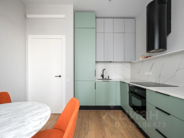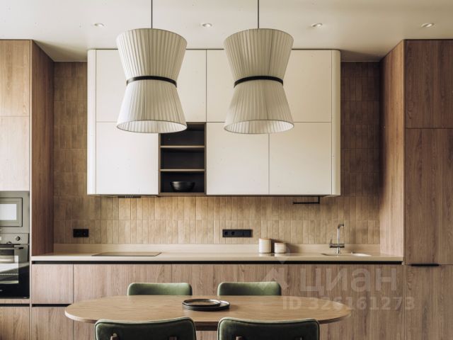 Удобная вместительная кухня (по индивидуальному дизайн проекту) оборудована встроенной бытовой техникой, в наличии духовой шкаф, свч, варочная панель, вытяжка, посудомоечная машина, холодильник, стиральная машина.