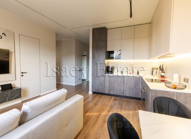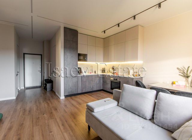 Квартира полностью готова к проживанию — здесь есть все необходимое, включая современную мебель и бытовую технику. Общая площадь квартиры 54,3 м2 (без учёта лоджии), жилая — 29,5 м2. Входная дверь Gardian. Изолированные комнаты (17 и 12,5 м2) разделены большой кухней 10,8 м2. Застекленная лоджия с выходом из кухни. Комнаты и кухня правильной прямоугольной формы, что дает возможность удобно разместить мебель. Для хранения вещей предусмотрена кладовая (гардеробная). Санузел раздельный с качественной сантехникой. В комнатах установлены сплит-системы, на полу паркетная доска, в кухне — плитка. Кухонный гарнитур со встроенной немецкой техникой Neff (варочная панель, духовка, посудомойка) и почти вся мебель остаются будущим покупателям. В подъезде 2 лифта, в т.ч. грузовой. Есть консьерж. На парковке во дворе всегда есть свободные места.