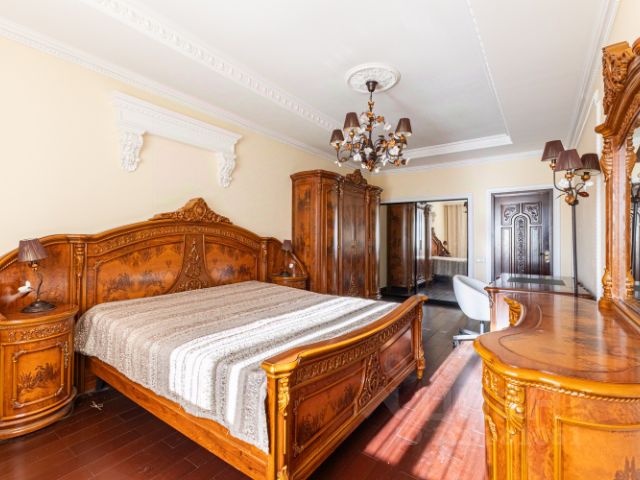 Лот: 113941. На продажу предлагается шестикомнатная квартира, площадью 236.8 кв.м., в ЖК "Корона Эйр". Планировка: гостиная, кухня-столовая, домашний кинотеатр, четыре спальни, одна из которых со своей гардеробной и санузлом, две гардеробные, два совмещенных санузла, постирочная, кладовая, прихожая. Высота потолков - 3,05 м. Из окон открываются живописные и красивые виды. Квартира полностью меблирована, в наличии вся необходимая бытовая техника от ведущих мировых производителей. Мебель и плитка от Версаче, в санузлах установлена качественная сантехника. Квартира оборудована приточно-вытяжной вентиляцией и системой кондиционирования. Закрытая и охраняемая территория. Видеонаблюдение. Гостевой паркинг. Два семейных машиноместа (38,4 кв.м.) в подземном паркинге по запросу. Удобная транспортная доступность и развитая инфраструктура района. Участник ассоциации AREA. Продается квартира на вторичном рынке в районе Тропарево-Никулино в Москве.