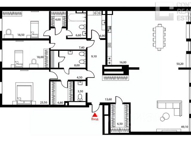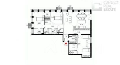 По планировке: светлая кухня-гостиная с дополнительным угловым остеклением 24,2 кв.м., мастер-спальня 16,5 кв.м. c гардеробной и санузлом с ванной и премиальной сантехникой Villeroy & Boch