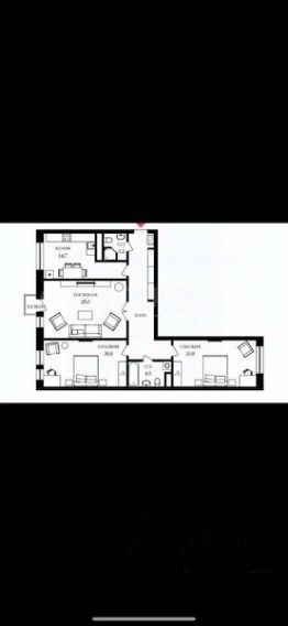 Изолированные комнаты: кабинет 14. кв.м., большая спальня - 20 кв.м, гардеробная 5 кв.м. с установленными системами хранения.