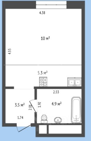 -общая площадь 17 кв. м ( 1этаж: 13.5 кв м +2 этаж :3.5 кв м )