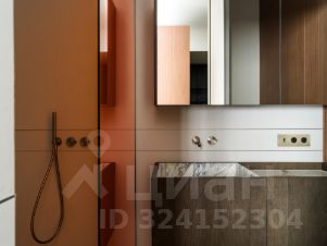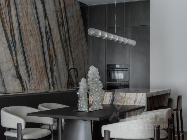 В квартире выполнена премиальная дизайнерская отделка с использованием высококачественных и натуральных материалов, таких как: натуральный мрамор, анодированная бронза, натуральный итальянский шпон, анодированная латунь.