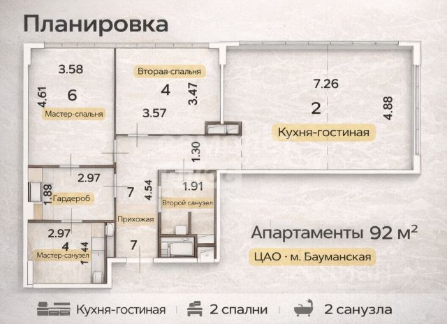 Квартира в Tatlin Apartments 57,2м² с отделкой под ключ, готовой инфраструктурой и панорамным видом на Москву! Без обременений. Свободная продажа. Быстрый выход на сделку. Банковская гарантия на сделку сроком на 30 лет. Апартамент находится на 10-ом этаже и включает кухню-гостиную, мастер-спальню и санузел с душевой кабиной. Огороженая территория, охраняется круглосуточно. На первом этаже просторное лобби с зоной ожидания и отдыха. Подземный паркинг для жильцов и гостевая парковка. На 7м этаже находится общественное пространство Sky Garden: Зимний сад, открытая терраса по периметру здания. В пространстве можно заняться спортом, поиграть в шахматы, теннис, есть детская площадка, коворкинг и зона отдыха с библиотекой. Ваш личный клуб внутри дома. Апарт-комплекс находится в историческом локации с развитой инфраструктурой: В пешей доступности много зеленых зон для прогулок и достопримечательностей: Малютин сад, Сад имени Баумана, парк Сокольники, усадьба Разумовского, Центр современного искусства и многое другое. Рядом ТТК, престижные университеты (МГТУ им. Баумана, НИУ ВШЭ и др). Потолки отделаны гипсокартоном, стены — краской, пол — инженерной доской POLARWOOD, а санузлы облицованы керамогранитом ITALON. Кухня оснащена встроенным кухонным гарнитуром, в прихожей, мастер-спальне, коридоре и детской комнате установлены встроенные шкафы из ЛДСП с фасадами из МДФ и фурнитурой BLUM. Французский балкон со стеклянным ограждением проходит по периметру апартамента. В каждой комнате установлены кондиционеры LG с закрытой дренажной системой, подключённые к общедомовой VRV-мультисистеме. Освещение и розетки выведены к мастер-выключателю, что позволяет выключать свет во всём помещении при выходе. Входная дверь изготовлена из стали, межкомнатные двери деревянные с телескопическими наличниками, фурнитура Colombo. Система отопления представлена внутрипольными конвекторами SPL. Домофония работает по технологии TRUE IP. Тёплый пол оснащён терморегулятором CLIMATIQ BT, розетки и выключатели — Schneider Electric. Витражное остекление добавляет пространству лёгкости и современности. Агентскую комиссию не плачу.