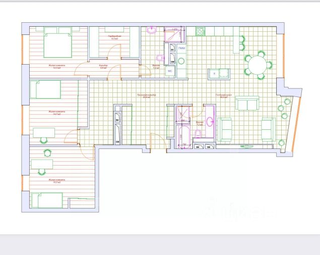 В квартире есть комнаты и два отдельных санузла, что удобно для большой семьи или гостей. Дизайнерский ремонт выполнен с использованием качественных материалов и учитывает современные тренды. Кухня оборудована всей необходимой техникой и мебелью, есть встроенные шкафы и системы хранения. Окна выходят во двор, поэтому в квартире тихо и уютно.