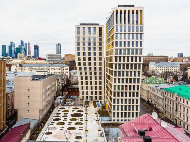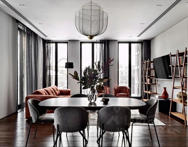 Квартира расположена в тихом квартале на высоком этаже жилого комплекса, что даёт возможность находится в эпицентре событий района Хамовники, но наслаждаться камерностью так, как на этаже по две квартиры.