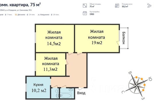 Квартира расположена в пешей доступности от метро ,,Бибирево,,