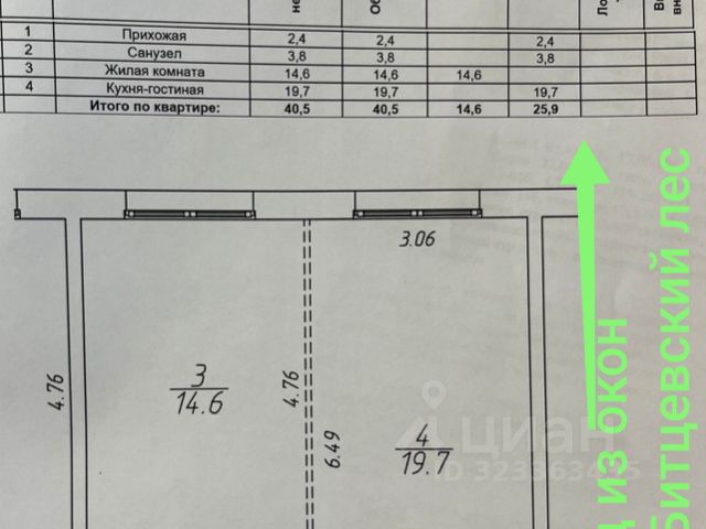 S Комнат общ. 16,65 м2; 26,50 м2; 15,45 м2