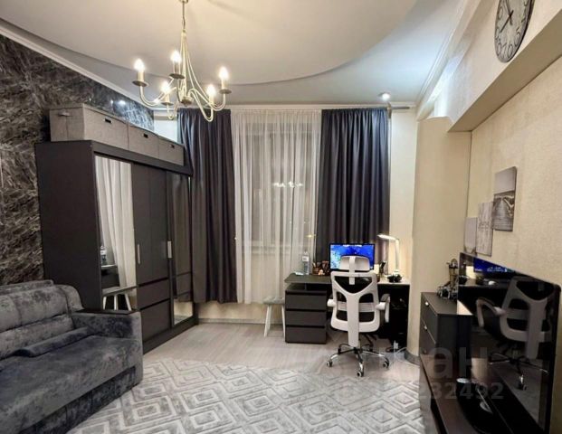 В квартире: холл 6 м2 с зеркальным шкафом; зал 30 м2 ; две спальни - 14,8 м2 и 17 м2 ; кухня с панорамными окнами 19,5 м2 ; два полноценных сан/узла - 4,2 и 6,7 м2 ; гардеробная 9 м2 ; балкон 8,5 м2. Высота потолков в квартире 3 м.