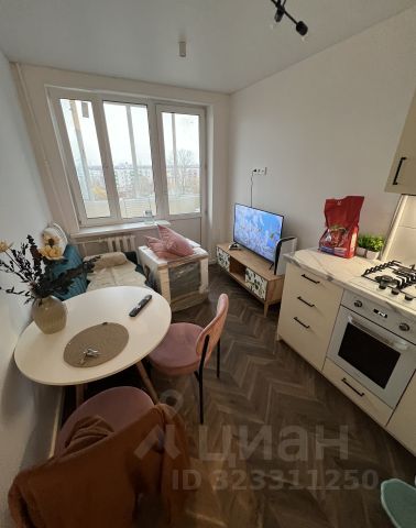 4)В кухне-гостиной установлены стильные деревянные жалюзи в белом цвете, чтобы уединиться от соседнего корпуса или отрегулировать освещение в комнате