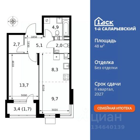 СТАНДАРТНАЯ ИПОТЕКА 10% БЕЗ НАЦЕНКИ! Прямая продажа от застройщика! Жилой Комплекс класса Комфорт+. Продаётся 2-к квартира номер 250 общей площадью 49.3 кв.м. на 7-м этаже 25 этажного здания. Без отделки. Цена с учётом скидки. Особенности квартиры: - Мастер-зона с санузлом и гардеробной. Всё для вашего комфорта и удобства, включая личный санузел и гардероб. - Просторная спальня, в которой можно разместить большую кровать. - Линейная планировка - максимальная функциональность и удобство. - Увеличенная ширина окна/окон - больше света и визуального простора. - Евроформат - просторное и удобное жилье с отличной планировкой. - Можно оборудовать рабочее место - комфорт для работы и учёбы. - Возможность добавить спальное место - дополнительный комфорт для гостей. - Гардеробная - удобство для хранения и организации вещей. - Просторная гардеробная - место для вашего личного пространства. - Ниша под шкаф - компактное и удобное место для вещей. - Лоджия - уютное место для отдыха и тишины. - Панорамное остекление лоджии - открывает вид на окружающий мир. Информация о комплексе: Весь микрорайон спроектирован в концепции "без машин". Пейзаж не портят припаркованные автомобили, а родители могут не опасаться за перемещение детей по всему кварталу. Территория комплекса - царство пешеходов. А что делать, если Вы или Вам подвезли чтото габаритное? Проблему решают сквозные подъезды, открывающие доступ в здание с внешней стороны комплекса. Проезд к домам организован по внешнему контуру микрорайона. Места для автомобилей отведены на 7 этажах наземного паркинга и в подземном паркинге 6-го корпуса. За порядком и безопасностью зорко следит множество камер. Безбарьерная среда облегчает передвижение по территории молодых родителей с колясками, маленьких детей и жильцов с ограниченными возможностями. Транспортная доступность: "1-й Саларьевский" расположен в Новой Москве всего в 2 км от МКАД и 5 минутах ходьбы от метро Саларьево. Если Вы за рулем, для Вас удобный выезд на скоростное Киевское шоссе. Передвигаетесь не на автомобиле? Станция метро Саларьево и автовокзал в пешей доступности. У метро находится один из крупнейших ТЦ Новой Москвы "Саларис". Это значит, что всевозможные покупки и разнообразные развлечения для всей семьи тоже рядом. Личный автотранспорт: До Киевского шоссе - 0,2 км До МКАД - 2,4 км До Калужского шоссе - 5 км До Ленинского проспекта - 3,2 км Общественный транспорт: До станции метро "Саларьево" - 7 мин пешком До остановок наземного транспорта - 5-10 мин пешком До Ленинского проспекта на автобусе - 10 мин Внутренняя инфраструктура: Во дворе царит атмосфера легкого беззаботного настроения. По сторонам расположились любимые местными жителями магазинчики, где можно купить товары первой необходимости, кафе, где приятно посидеть с друзьями, и кофе-пойнты. На бульваре можно посмотреть уличную выставку, поиграть с соседями в шахматы и покачаться на световых качелях. Дети растут быстро, и вот уже возник