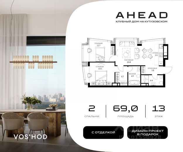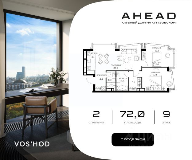 Успейте приобрести по выгодным условиям! Ahead это эксклюзивный проект в центре столицы, включающий всего 77 резиденций, что гарантирует приватность и комфорт для жильцов. Комплекс отличается авторской архитектурой от бюро "Цимайло Ляшенко и Партнёры", а из окон открываются панорамные виды на Парк Победы, Воробьёвы горы и Москва-Сити. Внутреннее пространство оформлено с особым вниманием к деталям: лобби создано студией UNK Interiors, а двор благоустроен в японском стиле с 58-метровым водопадом высотой 4,5 м и сосной "ниваки". Все резиденции предлагаются с отделкой White Box. При покупке ряда апартаментов владелец получает в качестве бонуса готовый дизайн-проект с рабочей документацией от известной студии дизайна BALCON, что в разы ускорит и упростит процесс превращения "белого листа" в продуманное и комфортное пространство для жизни. Для удобства жильцов на седьмом этаже расположен клубный этаж Sky Lobby, включающий Sky Social Club с панорамной террасой, фитнес-зону Air Fitness с кардиозоной и залом для йоги и пилатеса, а также коворкинг-трансформер с отдельной переговорной. В комплексе предусмотрен современный подземный паркинг с биометрическим контролем доступа, распознаванием госномеров и возможностью установки зарядок для электрокаров. На всей территории действует Wi-Fi. Расположение комплекса обеспечивает отличную транспортную доступность: до Москва-Сити и Киевского вокзала можно добраться за 10 минут на автомобиле, до инновационного центра Сколково — за 15 минут. Комплекс оснащён современными технологиями и системами безопасности, включая биометрический доступ по Face ID, умную систему управления домом, приточно-вытяжную вентиляцию, центральное кондиционирование и круглосуточный мониторинг. AHEAD — это пространство для комфортной жизни в сердце Москвы, где каждая деталь создана для благополучия жильцов.