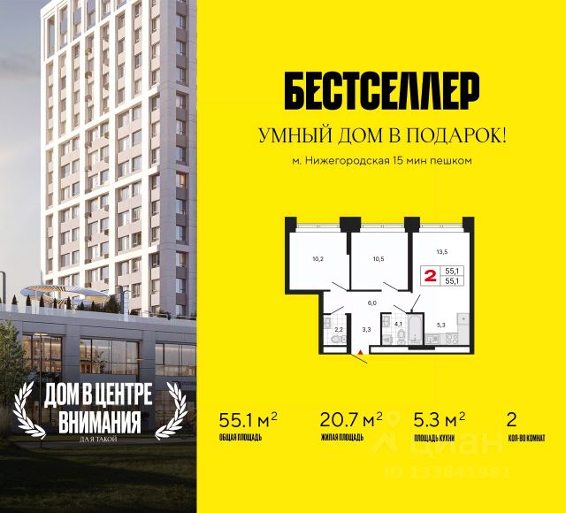 ЖК "Бестселлер" — клубный квартал у парков и метро. Продаётся 2-комнатная квартира на 25 этаже 29 - этажного дома (Корпус 1). Общая площадь: 54.7. Высота потолков от 2.87 м. "Бестселлер" — жилой комплекс комфорт-класса на юго-востоке Москвы, в окружении зеленых зон и с продуманной приватной атмосферой. Комплекс включает две башни на 16 и 29 этажей, объединенные стилобатом с lounge-пространствами. Идеальный баланс уединения и удобства городской жизни. Комфорт и безопасность: Территория закрыта и охраняется, вход — по пропускам. Подъезды с просторными лобби, каминами и зонами ожидания. В каждом корпусе — по 2 лифта (пассажирский и грузовой). Подземный паркинг с зимним садом, кладовые и колясочные. Есть гостевые стоянки. Умные технологии: Современные системы делают управление домом простым и удобным. Свет, климат, безопасность и клининг работают автоматически — по команде голосового помощника или через мастер-выключатель. В центре системы — умная станция с Алисой, которая легко справляется с повседневными задачами. Технологии доступны каждому жителю: — Умный доступ: вход в подъезд и проезд через шлагбаум без ключей. — Видеонаблюдение с интеллектуальной аналитикой. — Автоматический вызов лифта при приближении. — Плановая уборка общих зон без напоминаний. Пространство для жизни: На территории — воркаут, детские и игровые площадки, пруд с шезлонгами, коворкинг на свежем воздухе, велодорожки, прогулочные аллеи. Полноценная community-инфраструктура: магазины, кафе, салоны и аптеки прямо на первых этажах. Транспорт и окружение: До метро (Андроновка, Перово, Стахановская, Нижегородская) — 1015 минут пешком. В районе — школы, детсады, парки и торговая инфраструктура. Сдача комплекса — I квартал 2028 года.