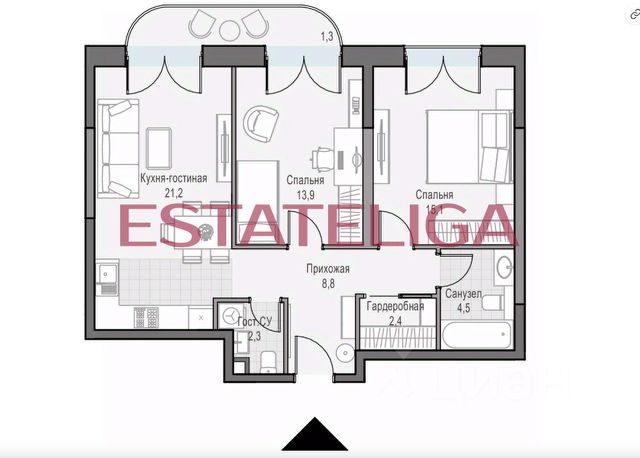 Односпальная квартира с кухней-гостиной. В прихожей просторная гардеробная площадью 3,1 м2. Окна выходят на Запад, откуда открываются виды на закат. "Достижение" - единственный дом с торжественной архитектурой в окружении бескрайних парков на любой вкус: парк "Дубовая роща", обновленный классический парк "Останкино", самый известный парк России ВДНХ и крупнейший в Европе ботанический сад. Дом находится в непосредственной близости от центра города: до Садового кольца на автомобиле - 15 минут, 700 м до станции метро "Бутырская", а от нее всего 3 станции на метро - и вы на Цветном бульваре. Архитектура проекта - современное прочтение торжественного и изящного стиля ар-деко, который, как и сталинский ампир, сформировался в результате развития идей чикагской школы. В доме 6 секций, 115 вариантов продуманных планировочных решений - от уютных студий до просторных пентхаусов с дровяным камином. В каждой квартире предусмотрен полный комплекс систем комфорта: принудительная центральная вентиляция с фильтрацией воздуха, очистка воды до уровня питьевой, круглогодичное горячее водоснабжение, быстрые бесшумные лифты, которые идут прямо в паркинг, продуманная подготовка под кондиционирование и другие технологические решения. В доме "Достижение" общественные пространства и квартира тоже гармонично дополняют друг друга, как части единого целого. Здесь есть инфраструктурный центр Clubhouse только для жителей, открывающий возможности для общения и детского развития: клубная гостиная жителей по стандарту Friend`s Lab и детская игровая комната 250 кв.м. в концепции Kid`s Lab. На площади 1,7 гектара создан живописный парк с террасным склоном, в котором растут луговые травы, кустарники и деревья. Пространство ландшафтного парка разделено на зоны для активного и спокойного отдыха с зелёными уголками для любителей тишины. Для спокойного отдыха: тихие места с беседками и шезлонгами, клубная гостиная в концепции Friend`s Lab с открытой террасой и гамаками, зона для барбекю, смотровая галерея, уютный пруд, а также пять пеших маршрутов для променада. Для активного отдыха: универсальная многофункциональная спортивная площадка, отдельная зона для занятий workout и бесплатный фитнес-зал только для жителей по стандарту Fit Lab. В центральной части парка расположен амфитеатр со сценой для представлений и проведения мероприятий. Для гармоничного развития маленьких жителей - пространства по стандарту Kid`s Lab для гармоничного развития детей всех возрастов: детская площадка, игровая комната, рельефная площадка для общения со сверстниками, где можно заниматься паркуром, танцевать и играть в настольный теннис.