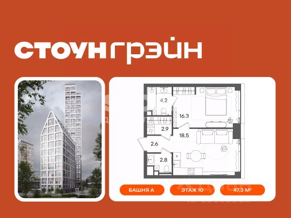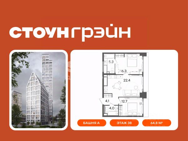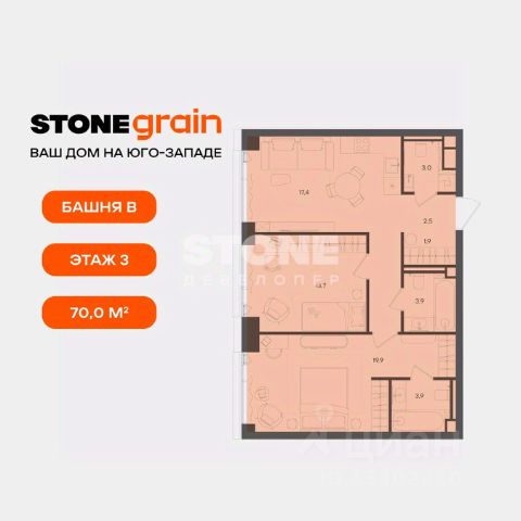 В продаже 2-спальная квартира с просторной кухней-столовой, мастер-спальней, дополнительным санузлом, угловой гардеробной при входе и большим количеством зон для хранения вещей. Вторая комната может быть адаптирована под детскую или кабинет. Квартира с 2 спальнями - прекрасный выбор для семей с 1-2 детьми, а также отличное инвестиционное решение для тех, кто планирует сдавать жилье в аренду. Жилой комплекс бизнес+ класса СТОУН Грэйн находится на Юго-Западе Москвы в Обручевском районе. Расположение вблизи двух станций метро и ключевых транспортных магистралей обеспечивает быстрый доступ к центру столицы и соседним районам: - 2 мин. до м. "Калужская" и "Воронцовская" - Удобный выезд на ул. Обручева и ул. Профсоюзную - 2,5 км до Ленинского проспекта - 6 км до ТТК и МКАД - 10 км до Садового кольца и Рублёвского шоссе - 30 мин. на автомобиле до "Москва-Сити", Лужников и МГУ Проект расположен в районе с развитой образовательной и социальной базой. Рядом с жилым комплексом находятся ведущие вузы Москвы, лучшие детские сады и школы. Среди других особенностей - зеленое окружение, близость к Воронцовскому парку. Проект отличает выверенная архитектура от Kleinewelt Architekten. Башня А высотой в 45 этажей станет архитектурной доминантой с выразительными поясами балконов галерейного типа и эксклюзивными лотами со вторым светом. Камерная 20-этажная башня Б со скатной крышей будет включать двухуровневые квартиры с террасами. На закрытой благоустроенной территории разместятся игровые площадки для детей разных возрастов, workout-зона, павильоны для работы на открытом воздухе. Жители также смогут воспользоваться дополнительными зонами отдыха и инфраструктурой на территории, прилегающей к офисному кварталу класса А STONE Калужская. Комфортный микроклимат в квартирах обеспечивают современные инженерные решения. Для удобства жителей предусмотрен двухуровневый подземный паркинг на 270 машиномест. STONE - девелопер коммерческой и жилой недвижимости классов бизнес и премиум в Москве с 19-летним опытом. Сегодня занимает лидирующую позицию на офисном рынке (рейтинг РБК). В портфеле девелопера представлено 3 млн кв. м построенных, строящихся и проектируемых объектов, из которых более 1 млн кв. м находятся в стадии строительства. Компания имеет самый масштабный проектный портфель офисной недвижимости класса А на московском рынке (данные NF Group) и возглавляет топ устойчивых девелоперов, согласно исследованию FResearch - Forbes. В настоящий момент девелопером представлено 16 бизнес-центров класса А, а также 3 жилых комплекса бизнес+ класса. ID.29122