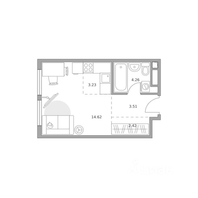 Продаётся студия 572, площадью 28,04 м², на 10 этаже в ЖК "Гранель Коломенское" корпус 1. Стоимость — от 14324005 руб. Квартира без отделки, планировка односторонняя, окна во двор.