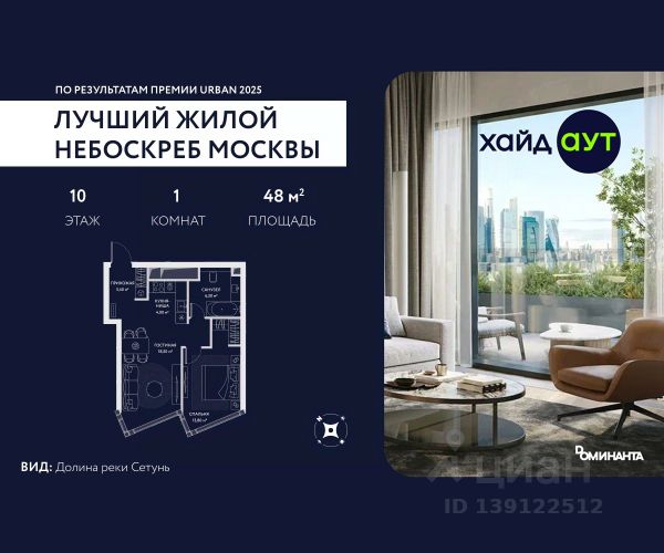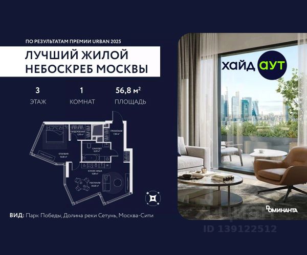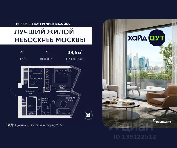 Прямая продажа от застройщика! Продается 1-комнатная квартира площадью 38.6 кв.м. на 4-м этаже 34-этажного дома в жилом комплексе ХАЙДАУТ с панорамными видами: Во двор. Высота потолков 3,25 м. В проекте действуют привлекательные условия покупки: скидка до 15% при рассрочке 0% на 1,5 года или при оплате одним платежом (в том числе ипотека). Предложение действует до 31.03.2026. ХАЙДАУТ — премиальный проект компании Dominanta. Это новый уровень жизни и комфорта без компромиссов. Две башни — 34 и 49 этажей — открывают захватывающие виды на Москву. Архитектурной доминантой проекта становится мост, соединяющий башни на высоте 80 метров. Закрытая территория, охрана 24/7, зона экстренной безопасности на подземном уровне, система пожаротушения. На мосту между башнями на 22-м этаже находится общественное пространство SocialHUB — предусмотрено 16 комфортных пространств для работы, отдыха и развлечений с панорамными видами и клубным форматом доступа. Концепция благоустройства ХАЙДАУТ — баланс между природой и технологичным городом будущего. На территории сада предусмотрены 15 зон для отдыха, работы, спорта и детей. Знаковым местом станет центральная площадь с амфитеатром и водопадом — сочетание камней, растений и струящейся воды создает идеальный баланс с природой. Застройщик АО "СЗ "ХАЙДАУТ", ИНН 7729058636, ОГРН 1027739319420. Проектная декларация на сайте наш.дом.рф. Предложение не является публичной офертой.