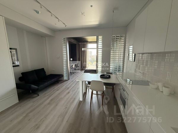 светлая квартира состоит из двух частей общей площадью 73,4 м² и высокими потолками 3 м и панорамным остеклением