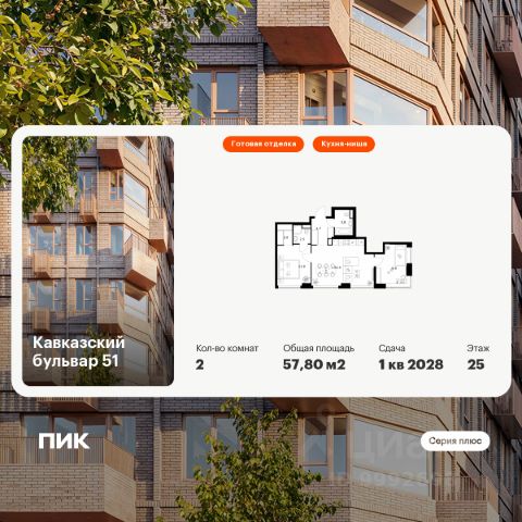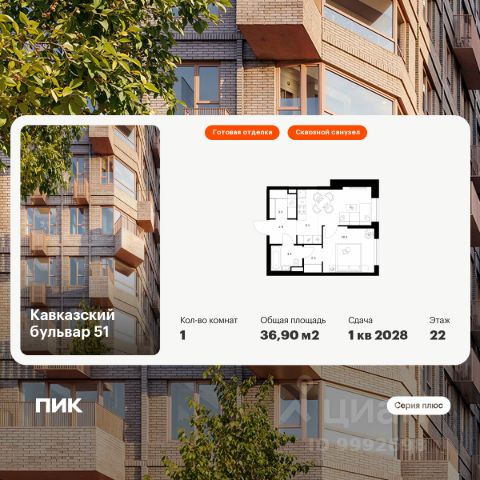 Продаётся 1-комн. квартира площадью 32,8 кв.м на 14 этаже 24 этажного дома (Корпус 3.5, Секция 2) проекта ПИК Кавказский бульвар 51. Светлый просторный подъезд на уровне земли, функциональная планировка, большие окна, предчистовая отделка. "Кавказский бульвар 51" — современный жилой квартал в районе Царицыно. Проект частично реализован. "Кавказский бульвар 51" находится в районе Царицыно, недалеко от одноимённого музея-заповедника. До метро "Кантемировская" — 17 минут пешком. За 20 можно дойти до станции "Чертаново". В 10 минутах на машине — МКАД, в 11 минутах — Варшавское шоссе, а в 16 минутах — ТТК. В проекте жилые дома высотой от 5 до 33 этажей, детский сад и школа. На первых этажах доступны магазины, кафе, салоны красоты и другие сервисы — чтобы купить кофе и свежий хлеб к завтраку, можно просто спуститься на лифте. В уютных дворах-парках есть места для отдыха и детские площадки. Для прогулок на свежем воздухе мы построим для жителей широкий пешеходный бульвар. В районе вокруг "Кавказского бульвара 51" есть всё для комфортной жизни: детские сады, школы, поликлиники, магазины и торговые центры. Девять минут на машине — и вы у музея-заповедника "Царицыно", где можно гулять среди исторических построек, лежать на траве под тенью деревьев или заниматься спортом на специальных площадках. Есть парки и поближе: до Аршиновского можно дойти за 8 минут, а до парка "Сосенки" — за 13 минут. Артикул 998641 (Застройщик АО "СПЕЦИАЛИЗИРОВАННЫЙ ЗАСТРОЙЩИК "ТОРГОВЫЙ ДОМ СПУТНИК")