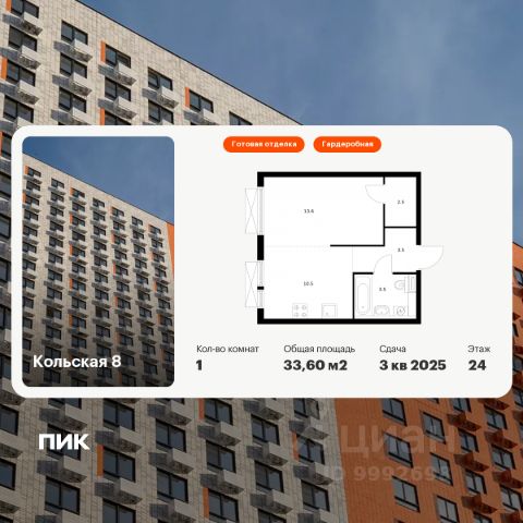 Продаётся 2-комн. квартира площадью 47,1 кв.м на 2 этаже 25 этажного дома (Корпус 2.1, Секция 2) проекта ПИК Кольская 8. Светлый просторный подъезд на уровне земли, функциональная планировка, большие окна, c отделкой. Жилой квартал "Кольская 8" строится в Бабушкинском районе, в 8 минутах пешком от метро "Свиблово". До Ярославского шоссе на машине — 8 минут, а до ТТК — 16. До нескольких парков и набережной реки Яузы можно дойти пешком. Проект состоит из корпусов с подземными паркингами, школа и детский сад. В зелёных дворах-парках будут места для отдыха, современные детские и спортивные площадки. На первых этажах откроются магазины, кафе и другие сервисы — за кофе и свежим хлебом к завтраку можно будет просто спуститься на лифте. Рядом с кварталом есть всё для комфортной жизни: в 8 минутах неспешным шагом — благоустроенные парки Яуза и Свиблово, а до Ботанического сада можно доехать за 7 минут на машине. Недалеко от проекта находятся детские сады, школы, поликлиники, магазины и торговые центры. Артикул 834577 (Застройщик АО "СПЕЦИАЛИЗИРОВАННЫЙ ЗАСТРОЙЩИК СТРОЙДЕТАЛЬ")