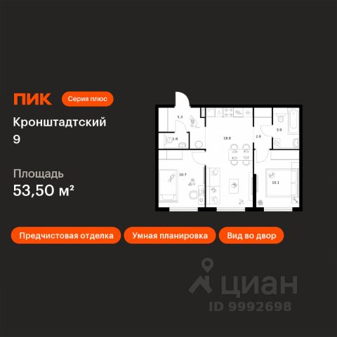 Продаётся 2-комн. квартира площадью 57,7 кв.м на 15 этаже 32 этажного дома (Корпус 1.1.3, Секция 3) проекта ПИК Кронштадтский 9. Светлый просторный подъезд на уровне земли, функциональная планировка, большие окна, предчистовая отделка. Жилой квартал "Кронштадтский 9" возводится в Головинском — в одном из районов с лучшей экологией в Москве. Совсем рядом станция метро "Водный стадион" — до неё 3 минуты пешком. Поездка на машине до Ленинградского шоссе займёт 2 минуты, до ТТК — 10 минут, а до МКАД — 16 минут. Недалеко от жилого квартала находятся парки и пруды — спокойные места для прогулок и отдыха. В "Кронштадтском 9" можно купить квартиру в уже готовом корпусе и сразу получить ключи. В проект входит 10 корпусов с просторными и светлыми подъездами, два детских сада и подземный паркинг. Внутри квартала будут уютные дворы-парки с детскими площадками и местами для отдыха. А чуть дальше, чтобы шум не беспокоил жителей домов, мы построим спортивные площадки. Во всех квартирах в этом проекте предчистовая отделка, с которой легче реализовать ваши дизайнерские идеи. В районе, где строится "Кронштадтский 9", есть всё для комфортной жизни: школы, сады, вузы, магазины и крупные торговые центры "Водный" и "Метрополис". В 15 минутах ходьбы — парк у Головинских прудов, в 18 минутах — парк "Дружба". Оба для прогулок, пробежек и отдыха от дома и работы. Ключевая особенность новых корпусов проекта — это особый архитектурный образ, разработанный бюро М.А.М. Здания привлекают внимание контрастом светлых фасадных поверхностей с тёмными, более детализированными элементами. Архитектурные приёмы формируют связь с городским контекстом: низкоэтажные корпуса естественно вписываются в окружающий ландшафт, в то время как 32-этажная башня добавляет вертикальный акцент, усиливающий общий облик квартала. В "Кронштадтском 9" умные планировки: вы сами выбираете, как их использовать, чтобы ваша квартира была максимально комфортной именно для вас. Например, постирочная может стать студией звукозаписи, а зона для гардероба — кабинетом. В новых корпусах есть квартиры с кухней-нишей, сквозным санузлом и мастер-спальней с собственной ванной. Квартиры продаются с предчистовой отделкой. Это значит, что к моменту получения ключей в доме уже закончатся самые грязные и шумные работы, а вам будет легче реализовать дизайнерские идеи. Рядом с проектом есть всё необходимое. В паре минут пешком — торговые центры "Гавань" и "Водный", а в 7 минутах на машине — большой ТРЦ "Флотилия". В шаговой доступности аптеки и детская городская поликлиника. Доехать до взрослой поликлиники можно за несколько минут. Вокруг несколько интересных мест для прогулок, в том числе с детьми. Можно арендовать лодку или просто понаблюдать за плывущими яхтами и парусниками на Северном речном вокзале, побродить по парку возле усадьбы Грачёвки или сходить в музей охоты и рыболовства. Артикул 967680 (Застройщик АО "Специализированный застройщик МАК8")