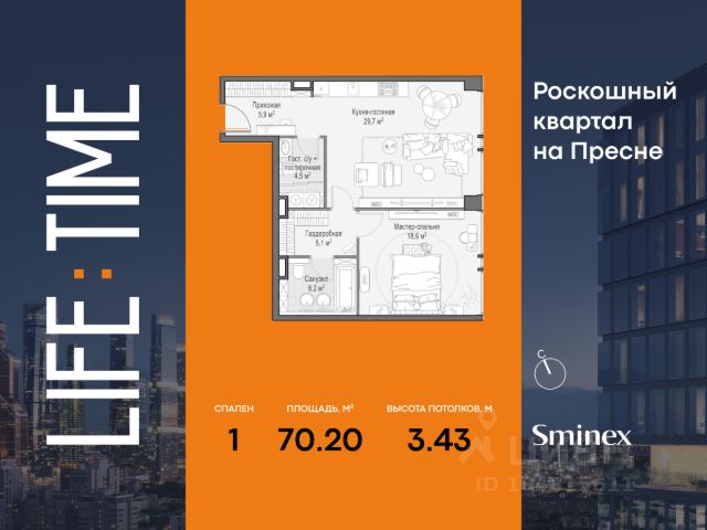 Life Time - роскошный современный квартал на Пресне, в наиболее быстро растущем премиальном районе ЦАО. Его насыщенная инфраструктура и выгодное расположение дарят время для жизни. Вы больше не тратите его на дорогу или ожидание, при этом ни в чём себе не отказывая. На территории предусмотрено всё для комфортной жизни: • двор-парк площадью 1,8 гектара с прудом и фонтанами; • Clubhouse - инфраструктурный центр в отдельном здании с исчерпывающими возможностями для спорта, отдыха и досуга только для жителей; • спортивная инфраструктура на улице и в помещении, в том числе бассейн длиной 25 метров, хот-таб, хаммам, сауна, бьюти-зона; • клубная гостиная с террасой; • всё для развития и досуга детей любого возраста, в том числе детский сад и школа. Life Time находится в центре сложившегося премиального района, в окружении многочисленных парков. Удобная транспортная доступность и прямой выезд на Звенигородское шоссе позволяют без проблем добраться до Садового кольца и Москва-Сити. Архитектурный стиль квартала - роскошный минимализм. Дома десятилетиями будут выглядеть современно. В Life Time представлен широкий выбор как квартир, так и особых форматов: двухэтажные пентхаусы с каминами и террасами, скай-виллы.