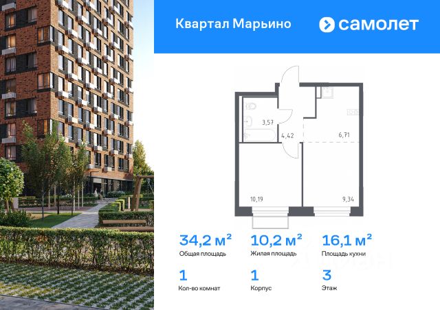 Строим кварталы для жизни с заботой о будущем. Предлагается 1-комнатная квартира комфорт-класса 32,26 кв.м в корпусе 2 на 17 этаже, в ЖК "Квартал Марьино" Квартира без отделки. Доступность опции "отделка" и возможность комплектации мебелью и декором уточняйте у застройщика. Приобрести квартиру возможно по специальным акциям от застройщика, с текущими условиями акций можно ознакомиться в блоке "Акций". Цена динамическая и может отличаться, уточняйте актуальность у застройщика. "Квартал Марьино" — проект в Новой Москве, в 18 км от МКАД, вблизи Валуевского лесопарка. Здесь будет все, чтобы получать удовольствие от жизни: приватные дворы-парки без машин, инфраструктура в шаговой доступности и общественные пространства для разнообразных занятий на свежем воздухе. До станции метро "Филатов луг" — 15 минут на машине по Филимонковскому шоссе. Живописные места для отдыха на природе — на расстоянии 2-5 км от дома. На территории будут построены 6 детских садов, 4 школы, поликлиника и спортивный комплекс, а также кафе, магазины и салоны красоты на первых этажах жилых домов. В закрытых дворах-парках предусмотрены игровые площадки, лужайки для пикников и йоги. Пространства для спокойного отдыха будут огорожены живыми изгородями. Дизайн-код проекта — "Полевые цветы". Он прослеживается в каждой детали — от натуральных оттенков фасадов до элементов благоустройства в эко-стиле.