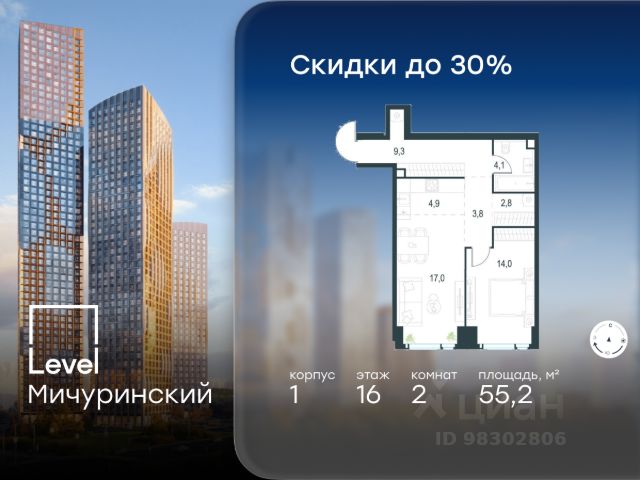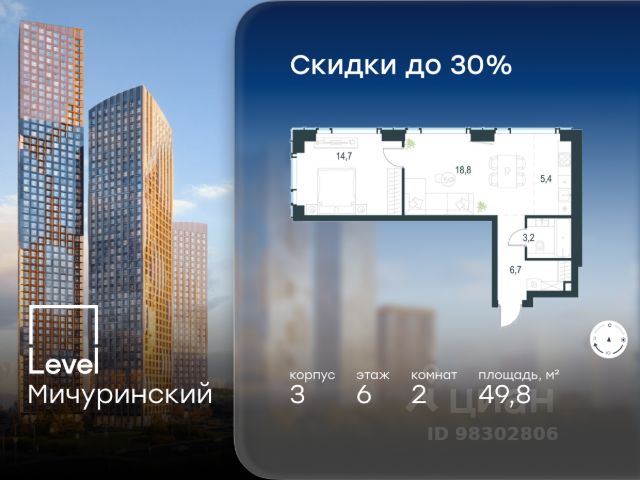 Цена указана с учётом скидки при 100%-й оплате, несубсидированной ипотеке, рассрочке (кроме программы "Рассрочка 0%"). В жилом квартале, расположенном на границе с природным заказником "Долина реки Очаковки", продаётся студия площадью 22.20 кв.м без отделки. Квартира расположена на 22 этаже 42-этажного корпуса 2 в жилом комплексе бизнес-класса Level Мичуринский (компания Level Group/Левел групп). Отличная транспортная доступность - 10 мин. пешком до станции метро "Мичуринский проспект" - 15 мин. пешком до станции метро "Аминьевская" - 7 мин. на авто до МКАД - 10 мин. на авто до ТТК - 15 мин. на авто до Москва-Сити Продуманный архитектурный проект - Выразительная архитектура от известных бюро: корпуса 1-6 - СПИЧ, корпуса 7-13 - Borisov Architects; - Из окон открываются живописные виды на парки, Москва-Сити и МГУ; - Высокие потолки до 6,35 м; - Стильные лобби с окнами в пол и высокими потолками до 4,7 м; - С каждого этажа дома на лифте можно спуститься в подземный отапливаемый паркинг. Расположение Level Мичуринский строится в одном из самых зелёных районов Москвы - Очаково-Матвеевское. Этот уголок столицы идеален для поддержания здорового образа жизни. В шаговой доступности от проекта находятся заказник "Долина реки Очаковки" - 1 мин. пешком и Очаковский парк - 7 мин. пешком. На велосипеде можно добраться до таких парков, как "Событие", парк Олимпийской деревни, парк 50-летия Октября и парк Школьников. В 15 минутах езды на авто расположено более 30 детских садов (из них 14 в пешей доступности), 32 школы (из них 13 в пешей доступности) и 14 вузов. Также в ближайшем окружении - более 25 медицинских учреждений, 11 спортивных клубов и 22 продуктовых супермаркета. Внутренняя инфраструктура На территории жилого комплекса строится три детских сада и школа. На первых этажах домов откроется супермаркет, фитнес-центр, ресторан, кафе и другие сервисы. Подземные этажи займут паркинги: трёхуровневые - в этапах 1 и 2, одноуровневый - в этапах 3 и 4. Преимущества проекта - 4,5 га благоустроенной территории с видовым мостом, уличным кинотеатром, зонами для тихого отдыха, работы, воркаута, площадки для петанка, футбола, настольного тенниса и пляжного волейбола. - Дизайнерские лобби с панорамным видом на двор, мойками для лап животных и комфортными зонами ожидания. - Безопасность жителей: круглосуточное видеонаблюдение всех зон общего пользования (лобби, лифты, паркинги, детские площадки), система контроля доступа, управление видеодомофоном через мобильное приложение, единый ключ доступа на территорию жилого комплекса. - Технологии и комфорт: высокоскоростной Wi-Fi в лобби и на придомовой территории, автоматическая система контроля и учёта ресурсов, абонентская связь с консьержем, распознавание номеров автомобилей при въезде в паркинг и выезде из него.