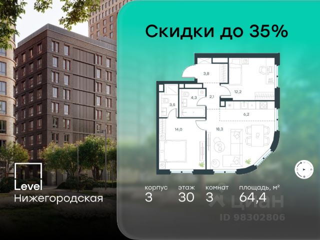 Цена указана с учётом скидки при 100%-й оплате, несубсидированной ипотеке, рассрочке (кроме программы "Рассрочка 0%"). В активно развивающемся районе на юго-востоке столицы продается 2-комнатная квартира площадью 59,4 кв.м без отделки.. Квартира расположена на 12 этаже 37-этажного этажного корпуса 3 в жилом комплексе комфорт-класса Level Нижегородская (компания Level Group/Левел групп). Отличная транспортная доступность - 10 мин. пешком до станции метро, МЦД-4, БКЛ и МЦК "Нижегородская"; - 13 мин. пешком до станций метро "Андроновка" и "Перово"; - 10 мин. на авто до ТТК; - 14 мин. на авто до Садового кольца. Благоустройство Благоустроенная территория комплекса делится на внешнюю и внутреннюю. Внутренняя часть - это закрытый двор 0,9 га, где обустраиваются детские площадки для разных возрастных групп, беседки для отдыха и работы, несколько спортивных зон, включая воркаут-зоны и лужайку для бадминтона. Здесь же появится ухоженный луг с прогулочными маршрутами. Рядом с жилым комплексом будет создан ландшафтный парк площадью 2,4 га. В парке будут высажены высокие деревья, луговые травы и кустарники, благоустроены лаунж-зоны у пруда, дорожки для бега и прогулок. В центре парка предусмотрена событийная площадь, рядом расположатся дополнительные спортивные и детские площадки, а также зона для выгула домашних питомцев. Внутренняя инфраструктура Дома жилого комплекса будут оснащены коммерческими помещениями, где откроются все необходимые сервисы: магазины, аптеки, салоны красоты, кофейни, службы доставки и многое другое. Комфорт - это когда всё рядом. Кроме того, на территории Level Нижегородская предусмотрен подземный отапливаемый паркинг. Этап 1 включает 335 машино-мест и 143 кладовых помещения для хранения сезонных вещей. Технологии и безопасность На территории всех общественных зон постоянно ведется видеонаблюдение и предусмотрен высокоскоростной Wi-Fi. Подъезды, паркинг и внутренний двор оснащены системой контроля доступа. Для удобства жителей создано мобильное приложение, позволяющее связаться с управляющей компанией, осуществлять удаленное управление видеодомофоном или просмотреть изображение отдельных видеокамер по заявке. Для безопасного перемещения по этажам и комфортного спуска в паркинг будут установлены современные лифты от компании BLT Brilliant Elevator. Скорость лифтов - 1,6 - 2,5 м/с. Особенности - Архитектура от экспертов из бюро ARCH(E)TYPE; - Разноуровневая застройка - от секций средней этажности до высоток в 45 этажей (этап 1); - Окна шириной до 2,2 метров (этап1) с видами на Останкинскую башню, Измайловский парк, "Москва-Сити" и Кусковский лесопарк; - Лобби с окнами в пол и потолками от 3,4 метров, оснащенные консьерж-сервисом; - Более 35 видов планировок, включая редкие форматы. Артикул 3-128.