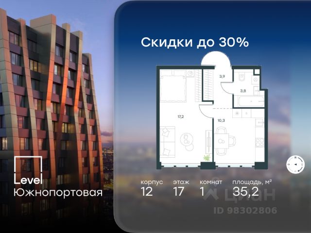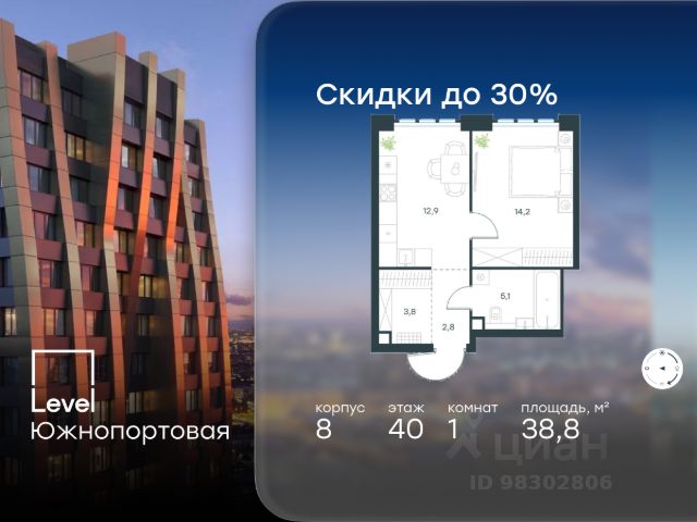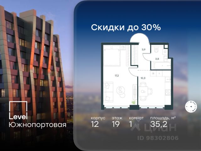 В северной части района Печатники продается 2-комнатный апартамент площадью 39.60 кв.м без отделки. Апартаменты расположены на 3 этаже 13-этажного корпуса 14 в жилом комплексе комфорт-класса Level Южнопортовая (компания Level Group/Левел групп). Отличная транспортная доступность: - 10 мин. пешком до станции метро "Кожуховская"; - 20 мин. пешком до станции МЦК "Дубровка"; - 3 мин. на авто до ТТК; - 13 мин. на авто до Садового кольца; - 15 мин. на авто до Бульварного кольца. Продуманный архитектурный проект: - авторская архитектура от бюро СПИЧ; - уникальные виды на реку, парки и достопримечательности города; - высота потолков в квартирах до 6 м; - окна высотой до 1,87 м с высоким коэффициентом сопротивления теплоотдаче. Расположение: Level Южнопортовая строится в северной части района Печатники - самой приближенной к центру. Здесь будет сформирован новый район "Южный порт", где построят крупный жилой и общественно-деловой центр, аналогичный Москва-Сити. В течение 10-12 лет в этом месте появятся не только жилые дома, но и развитая инфраструктура для жизни и работы. А еще совсем рядом находится набережная Москвы-реки, где планируется построить причалы для речных трамвайчиков и канатную дорогу. Уже сейчас вокруг жилого комплекса работают десятки магазинов и торговых центров, рядом расположено 6 парков, среди которых музей-заповедник "Коломенское". В 10 минутах пешком - 2 муниципальных и 2 частных детских сада, 7 общеобразовательных школ. Внутренняя инфраструктура: Для отдыха жителей в каждом корпусе предусмотрено лобби, оснащенное местами для отдыха, гостевыми санузлами и лапомойками, а в отдельных корпусах - камином. За счёт больших окон и высоких потолков пространства будут наполнены воздухом и светом. На первых этажах жилого комплекса откроются магазины, салоны красоты, фитнес-центр. Для детей строятся собственные детский сад и школа. Благоустройство: Внутренний двор комплекса разработан совместно с бюро GAFA. Основная идея - создать аналог Центрального парка в Нью-Йорке, гармонично сочетая высотные здания и большое изолированное парковое пространство. Вся площадь двора-парка будет огорожена и составит более 2 га, из которых 45% - озеленение. Одним из самых важных ландшафтных элементов здесь станет небольшая речка, наполняющаяся во время дождя. Вокруг неё появится сеть из островов, внутри которых расположатся тематические зоны спорта и отдыха. Технологии и инженерия: - автоматическая передача в управляющую компанию показаний квартирных счётчиков; - телефонная связь, телевидение и интернет на базе оптической мультисервисной сети; - гостевой Wi-Fi в лобби и на территории двора; - единый ключ доступа для входа на территорию комплекса.