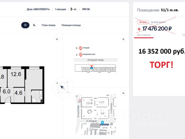 Продаётся 1-к апартаменты 34.5 кв.м. на 4-м этаже 28 этажного дома. Без отделки. Срок сдачи: 3 кв. 2025 г. Дом MALEVICH - это идеальный проект мультифункционального жилого дома, в котором все элементы общественных и личных пространств тщательно продуманы и спроектированы. Здание состоит из двух объемов, один из которых сдвинут относительного другого в горизонтальной плоскости. Авторы идеи придумали совмещать различные слои и цвета бетонов в одной плоскости и рисовать картины не кистью и красками, а различными рецептами бетонов. Картины украсят полы, стены и потолки входных групп, подземного паркинга, мест общего пользования. В Доме MALEVICH не один, а сразу 2 парковых общественных пространства, каждое из которых обладает собственной функцией: - внутренний двор только для жителей во внутренней части здания; - открытый парк-вернисаж на ул. Отрадная, доступный для внешних посетителей. Проект дома расширяет возможности вашей квартиры, предоставляя дополнительное пространство для работы, отдыха, учебы, дружеского общения и воспитания детей.Прямая продажа от застройщика ООО СЗ "Аквапарк "Отрадное ".