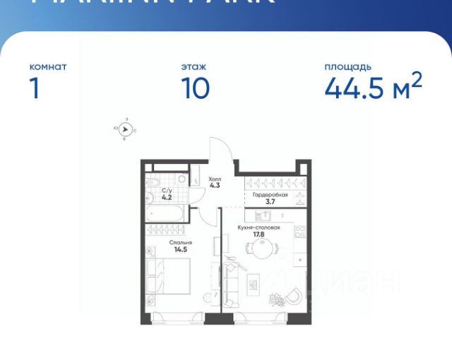 Продается квартира 69, по адресу г. Москва, ул. Октябрьская 103, корпус MariInn Park в Mariinn Park на 10 этаже, с площадью 44.5 м2.