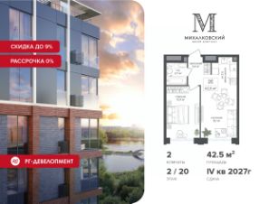 Идет выдача ключей. Продаётся 2-к квартира 58,1 кв.м. в ЖК "Михалковский" на 2-м этаже 20 этажного дома. Скидка 9% при покупке квартиры! Цена указана с учетом максимального размера скидки. Ипотека для каждого! Полная стоимость кредита от 12,380% до 18,537%. Ставка от 0,11% в АО "Альфа-Банк", ген. лицензия ЦБ РФ 1326 от 16.01.2015. Ставка фиксируется на первые 12 месяцев, далее полная стоимость кредита от 22,022% до 24,599% ставка 21,59%. Первоначальный взнос — от 20,1% от стоимости квартиры. Срок кредитования — от 4 до 30 лет. Компания "РГ-Девелопмент" предоставляет скидку на квартиры в жилом комплексе. Акция действительна до 30.04.2026 включительно. Чтобы воспользоваться предложением, необходимо подписать договор на приобретение недвижимости до 30.04.2026 включительно. Действует программа "Растет семья - растет и квартира". Компания "РГ-Девелопмент" вошла в ТОП-10 девелоперов по объёму введённого жилья в "Старой Москве" по итогам 2025 года. Прямая продажа от застройщика! Квартиры без отделки. Срок сдачи корпуса - 3 кв. 2024 г. Особенности проекта: Завораживающие виды Красивое благоустройство Уникальная локация для Москвы (рядом Головинский парк, пруды, усадьба Михалково) Рядом с центром В проекте присутствует: архитектура голландского бюро MLA+, зеленые зоны, транспортная доступность, благоустроенная территория, подземный паркинг, детский сад и выход на Головинский парк с пятью прудами. Название комплекса указывает на одну из его черт - соседство с имением Михалково. Позвольте себе жить в месте, где проводили свой досуг династии Дашковых и Паниных.