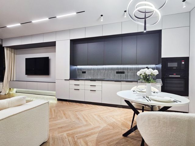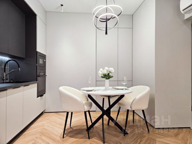 Квартира полностью укомплектована мебелью и техникой и не требует вложений: встроенная кухня (шпон)  и техника (варочная панель, духовой шкаф, вытяжка, СВЧ-печь), обеденный стол, стулья, диван, комод; мебель в спальне - вместительные шкафы, кровать;  вся мебель в ванной; встроенный шкаф в прихожей, два кондиционера. Все в отличном состоянии, мало эксплуатировалось - готова к комфортному проживанию или к арендному бизнесу.