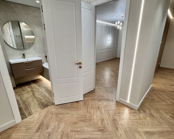 Квартира с качественной отделкой  - полы: керамогранит/кварц-винил; стены: обои; потолки: "натяжные", подсветка по периметру;  санузел: в плитке; входная дверь со звукоизоляцией.  Ремонт окончен в январе 2025 г.