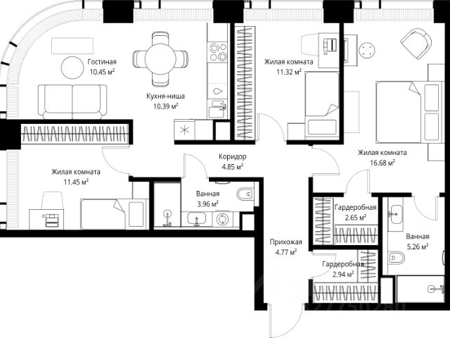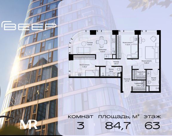 Старт продаж новой очереди! Продаётся 1-комнатная квартира общей площадью 32.97 м² без отделки в ЖК Веер на 2-м этаже 70 этажного дома. Веер.2 — вторая очередь футуристичного квартала бизнес-класса Веер. Это новая экосистема в престижном Западном округе Москвы, поражающая масштабностью внутренней инфраструктуры. ЖК находится всего в 5 минутах от Кутузовского проспекта и в 15 минутах от Сколково. Ансамбль из четырех стеклянных башен с доминантой в 237 метров разработан по принципу современного урбанизма и выражен в лаконичных объемах — параллелепипедах со сглаженными углами, которые придают зданиям утонченный вид. Расположение и транспортная доступность: • Образовательный комплекс в составе топовой школы, состоящий из двух зданий: основное на 1500 школьных и 450 дошкольных мест, отдельное здание детского сада на 300 мест. • Парк "Долина реки Сетунь" площадью более 700 гектаров • Рядом МГУ, МГИМО, РАНХиГС и Академия ФСБ • 15 минут по Кутузовскому проспекту до ужина в центре с видом на Москву-реку • 18 минут пешком до м. "Давыдково" • Открытие новых станций метро в шаговой доступности в будущем Инфраструктура: Двор в Веер.2 — это ассиметричные холмы, каменные "лабиринты", зеленые ковры и хвойные островки с единой живой экосистемой. Здесь есть все: • Павильон умиротворения Место отдыха под навесом в спокойной части двора, окруженное деревьями. • Активная тропа Тактильная дорога из камней разного диаметра для расслабляющих прогулок. • Бизнес-гарден Оборудованное пространство для работы на свежем воздухе со столом и встроенными розетками. • Детская площадка Двухуровневая площадка "Ботаника" с песочницей, переговорной трубой и горкой "Дружба". Компания MR предлагает своим клиентам специальные условия приобретения квартир в рамках программ ипотечного кредитования от банков-партнеров.