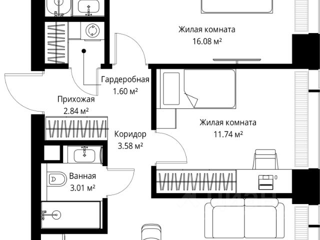 Старт продаж новой очереди! Продаётся 2-комнатная квартира общей площадью 60.22 м² без отделки в ЖК Веер на 21-м этаже 70 этажного дома. ВЕЕР.2 — это вторая очередь жилого комплекса бизнес-класса в престижном ЗАО, где реализована концепция 15-минутного города. Всё, что нужно для комфортной жизни, работы и отдыха, находится в шаговой доступности: офисный и спортивный кластеры, государственная рейтинговая школа 1329 и детский сад, центры творчества, ресторанный бульвар, фитнес и спа-центр с 25-метровым бассейном. • Архитектура и лобби ВЕЕР.2 — это ансамбль из четырёх стеклянных башен от бюро Kleinewelt Architekten, объединённых стилобатом с благоустроенным закрытым двором без машин. Моллированные окна обеспечивают максимум естественного света и ощущение простора. В каждой башне — роскошное лобби от испанского бюро Jaime Beriestain Studio: высокие потолки, обилие живых деревьев, природные материалы и палитра природных оттенков создают атмосферу Люксембургского сада прямо у вас дома. Двухуровневое гранд-лобби с коворкингом и библиотекой станет центром встреч с друзьями и соседями. В каждом лобби предусмотрены лапомойки и просторные колясочные. • Двор и инфраструктура Двор ВЕЕР.2 — это настоящий оазис северной природы: тактильная тропа, сад камней, асимметричные холмы, хвойные островки и павильон для отдыха. Для работы на свежем воздухе — бизнес-гарден, для занятий спортом — пространство для йоги и сайкла. Здесь всё продумано для поддержания гармонии в суете жизни. • Спорт и досуг Трёхуровневый фитнес и СПА-центр на 4000 кв.м с 25-метровым бассейном под прозрачной крышей, кардио- и силовыми залами, а также пространством для групповых занятий — всё это рядом с домом. • Планировки и технологии В комплексе представлены продуманные планировки: панорамные кухни-гостиные, гардеробные даже в небольших лотах, разделение на гостевую и приватную зоны, кладовые при кухнях. Малоэтажные уютные секции с 25 квартирами на этаже и с эксплуатируемой кровлей подойдут тем, кто ищет уединения. ВЕЕР.2 оснащён умной инженерией: скоростные лифты премиум-класса Sword, система считывания номеров в паркинге, гостевой Wi-Fi, приточно-вытяжная вентиляция, внутрипольные конвекторы. Безопасность обеспечивает отдельный вход для курьеров и современные системы охраны. • Парковка и сервис Для жителей предусмотрен удобный двухуровневый паркинг на 736 машиномест с прямым доступом из лобби, зарядками для электромобилей, зонами разгрузки, кладовыми и велопарковками.