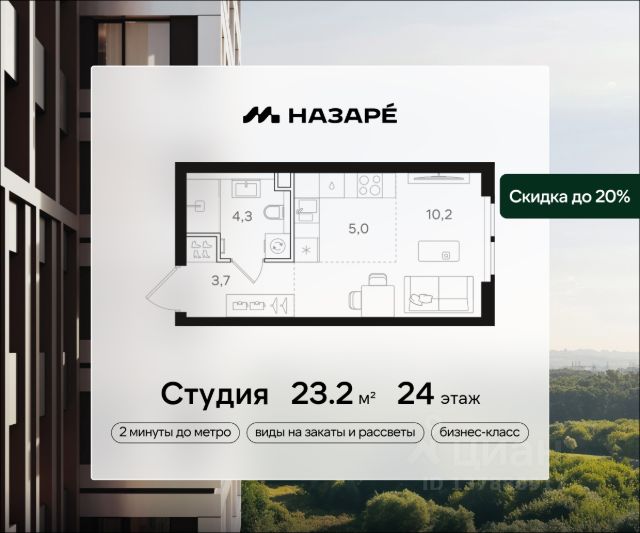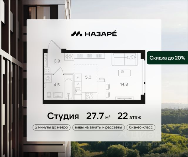 Просторная 2-комнатная квартира для молодой семьи. Общая площадь - 61.9м2, удобная планировка, кухня-гостиная 20.4м2. Панорамные виды из окон на две стороны - на национальный парк "Лосиный остров" и благоустроенный внутренний двор. Условия покупки: - Скидка при полной оплате - 10% - Ипотека от 3,5% на весь срок или 0,11% на первый год - Рассрочка без процентов - Trade-in с проживанием на время строительства дома НАЗАРЕ - шесть домов бизнес-класса высотой 24-43 этажа. Проект расположен рядом с национальным парком "Лосиный остров" и парком "Сокольники". В продаже квартиры с мастер-спальнями, кухнями-гостиными, открытыми террасами, просторными кладовыми и ванными с окном. Форматы - от светлых студий 21,6 м2 до семейных 4-комнатных 125,5 м2. Часть лотов - с предчистовой отделкой White Box. Транспортная доступность: - Метро "Бульвар Рокоссовского" и МЦК - 2 мин. пешком - Северо-Восточная хорда - 3 мин. на автомобиле - Третье транспортное кольцо - 15 мин. на автомобиле - Садовое кольцо - 18 мин. на автомобиле Инфраструктура: В составе проекта появится собственный детский сад и торгово-развлекательный центр с акцентом на шопинг и досуг. На первых этажах домов откроются кафе, пекарни, магазины и службы сервиса. В районе Богородское находятся престижные школы, медцентры, магазины и спортивные клубы.