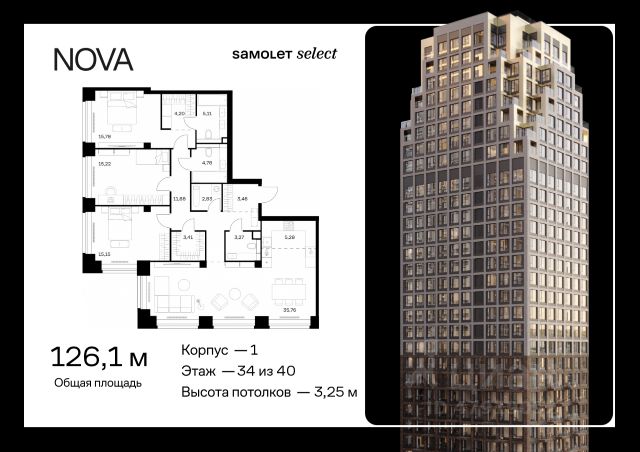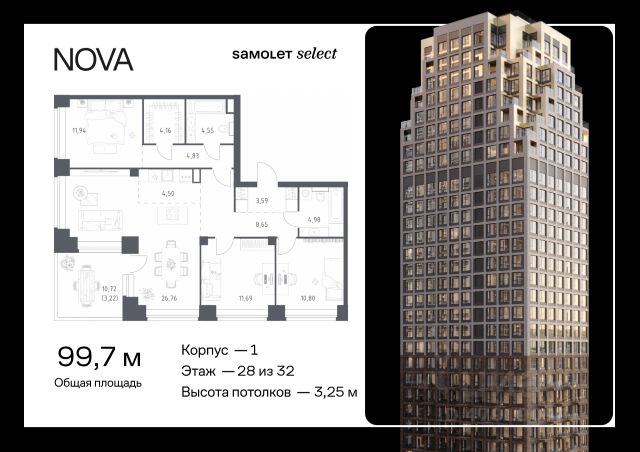 Редкая планировка: евро- четырехкомнатная, три спальни, одна из которых - мастер-спальня со своим санузлом и гардеробом, объединенная кухня и гостиная. Средний этаж, что позволяет получить самый лучший вид с большого балкона и на зелень гольф-поля и перспективный вид на Лужники/МГУ. Таких квартир у застройщика почти не осталось. Так же есть возможность приобрести машиноместо за отдельную стоимость! Машиноместо прямо около лифта. Таких мест у застройщика нет больше в продаже. И на том же этаже удобная кладовка. Самый лучший корпус в комплексе - меньше всего квартир. Благодаря расположению и полноценной инфраструктуре первых этажей в NOVA все близко: торговые и бизнес центры, кафе, рестораны, бытовые услуги, соседский центр, фитнес-клуб, гастропространство, парки и природа, музеи, образование, театры и многое д