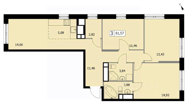 Особенности квартиры: просторная кухня - гостиная с 2 окнами (благодаря зонированию возможна кухня и изолированная комната), 2 изолированные спальни, холл, 2 санузла.