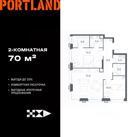 Цены указаны с условием 100% оплаты и стандартной ипотеки. Продаётся 2-к. квартира, 12 этаж в жилом комплексе бизнес-класса Portland от девелопера FORMA. ЖК расположен на берегу Москвы-реки в северной части района Печатники в акватории Южного речного порта. Основные преимущества проекта: • Самая протяженная береговая линия реки в Москве 13 км. • Вид на реку в сторону запада панорамные окна на самое широкое водное пространство Москва-реки (900 м) и на закат. • 95% квартир с видом на воду. • К Portland не примыкает крупных автомагистралей - отсутствие фонового шума дорог. • В перспективе ближайших 11 лет на территории района запланировано грандиозное преобразование и комплексное развитие. • Собственная набережная длиной 412 м., которая после завершения строительства сомкнется с эко-парком Печатники. • Прямой выход к воде и отсутствие проезжей части между Portland и береговой линией. • Инфраструктурное разнообразие: супермаркеты, крупные торговые центры, рестораны, кафе, фитнес-клубы, бьюти-салоны, компании сферы услуг и многое другое. • Собственная школа на 300 мест и детский сад на 275 мест. • Паркинг на 650 м/м • Транспортная вседоступность: метро, авто, велосипед, речной трамвай, канатная дорога • 15 мин. пешком до м. Печатники, 15 мин. на авто до ТТК, 20 минут на авто до Садового кольца