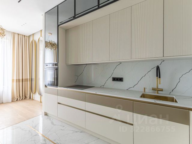 Квартира поражает своим дизайнерским ремонтом, выполненным с использованием дорогостоящих премиальных материалов. Итальянская кухня, мебель, созданная по индивидуальному заказу, паркетная доска Coswick, лепнина из гипса каждая деталь подчеркивает высокий статус этой недвижимости.