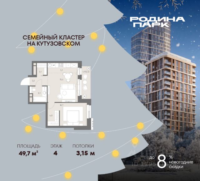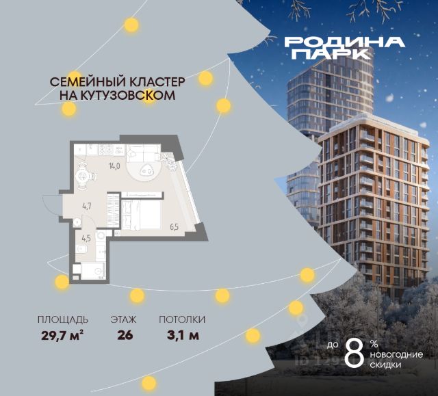 В жилом кластере Родина Парк рядом с природным заказником Долина реки Сетунь продаётся 2-комнатная квартира. Продуманная европланировка, которую легко зонировать под ваши запросы. Потолки от 3,1 м. "Родина Парк" — премиальный семейный кластер с образовательным медиакластером, строящийся на западе Москвы в окружении природного заповедника "Долина реки Сетуни". • Скидки недели на избранный пул лотов • Рассрочка 0% на выгодных условиях до 2 лет • Семейная ипотека, подбор комбо-вариантов ипотечных программ прямо в офисе продаж • Скидки 8% при 100% оплате или ипотеке. ЛОКАЦИЯ: 8 минут пешком до станции БКЛ "Давыдково". 12 минут на автомобиле до Нового Арбата. Удобные выезды на Кутузовский проспект, Аминьевское шоссе. ИНФРАСТРУКТУРА И СЕРВИСЫ ДЛЯ ЖИТЕЛЕЙ - Уникальная экосистема для развития, здоровья и творчества на территории 3,5 Га: - Первый в России образовательный медиакластер (с участием Русской медиагруппы) для творческого развития детей и взрослых с возможностью получить востребованную профессию в сфере шоу-бизнеса. - Инфраструктура и сервисы для семей с детьми на территории жилого кластера (частный детский сад, детские игровые пространства, творческие студии для занятий музыкой и танцами, безопасная и комфортная среда для детей и родителей), событийно-культурная площадка для проведения семейного досуга); - Здоровая среда (биохакинг-центр, фитнес-зал и спортивная инфраструктура во дворе, медитационные пространства, инженерные решения для освещения, свежего воздуха и очистки воды, сервисы красоты и поддержания активного долголетия); - Сервисы заботы (инфраструктура комфорта - подземный паркинг, кладовые, колясочные, консьерж- сервис, умный дом, мобильное приложение, профессиональная управляющая компания, сервисы охраны и обеспечение абсолютной безопасности) - Комьюнити резидентов (социальные пространства для дружеского и делового общения - летний атриум с уличным кинотеатром, зоны отдыха, кафе и рестораны, комьюнити-сервис с культурно- событийной программой в медиакластере); - Модуль благосостояния (комфортные пространства для работы и саморазвития - коворкинги и переговорные). ИНФРАСТРУКТУРА РАЙОНА: Насыщенная образовательная среда: филиалы МГИМО, МГУ, МГТУ, Сколково. Топовые школы: 6 лучших частных школ Москвы и области (Forbes) в 10 минутах езды. Природное окружение для пеших прогулок, спорта и отдыха. "Родина Парк" — это место, где растут и дети, и ваши возможности. Экосистема, где всё подчинено развитию — физически, профессионально, творчески.