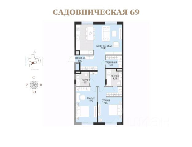 Просторная светлая квартира площадью 126,21 кв.м. Клубный квартал делюкс класса "Садовническая 69" на острове Балчуг Уникальный адрес в сердце Москвы — первая линия Садовнической набережной, золотой остров Балчуг. Тишина и уединённость сочетаются с близостью к главным достопримечательностям и лучшей инфраструктуре Москвы: Кремль, парк Зарядье, деловые центры и рестораны, престижные школы и детские сады рядом. Проект включает 4 клубных корпуса на 1 га приватной территории с закрытым хвойным парком и инфраструктурой делюкс класса. Гранд-лобби "Садовнической 69" спроектировано архитектурным бюро Олега Клодта как продолжение общей архитектурной концепции квартала. В оформлении лобби используются те же благородные материалы, что и в фасадах: белый камень, бронзовые элементы, натуральный мрамор. Коллекция квартир включает: - Видовые квартиры с панорамами на Кремль, набережную и парк. - Квартиры с террасой — личное пространство с видом на центр Москвы. - Квартиры с патио — приватный дворик для отдыха в центре города. - Пентхаусы с панорамным остеклением, просторными планировками и захватывающими видами. - Городские виллы — эксклюзивные двухэтажные резиденции с лифтом и выделенным выходом в паркинг. Внутренняя инфраструктура: Гранд-лобби с консьерж-сервисом, клубной гостиной и фитнес пространством Велнес центр с 25-метровым бассейном, термальной зоной и спортивным залом Детский клуб Подземный паркинг Безопасность и сервис Круглосуточная охрана, видеонаблюдение, контроль доступа. Отдельные входы для резидентов и персонала. Умные системы: климат-контроль, очистка воды, подогрев тротуаров. Консьерж-сервис 24/7: от организации мероприятий до подбора персонала. Рассрочка 0% от застройщика с первоначальным взносом от 50%. Сроки беспроцентной рассрочки зависят от даты внесения первоначального взноса, но не превышают 31.12.2027. Количество предложений ограничено. Не оферта.