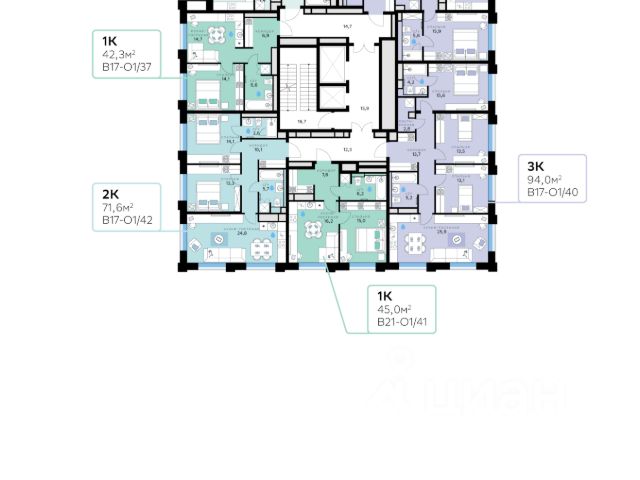 В продаже — однокомнатная квартира, общей площадью 41,1 кв. м. Квартира расположена на четвертом этаже семиэтажного корпуса класса Балансд в квартале В17 нового района СберСити, который строит Сбер. Квартал В17 — современная интерпретация голландской архитектуры. Каждый корпус имеет индивидуальный облик. Фасады домов класса Балансд облицованы кирпичом и клинкерной плиткой, над первым этажом проходит декоративный пояс из фигурной кладки. Французские балкончики чередуются с широкими окнами, создавая динамичный, но гармоничный ритм. Квартира сдаётся без отделки. Установлены двухкамерные стеклопакеты с алюминиевым профилем и скрытыми створками. Высота потолков — от 2,7 м. В квартирах предустановлена система "умный дом" — комплекс решений, объединяющий квартиру, дом и прилегающую территорию. Жильцы смогут регулировать климат и освещение голосом или со смартфона, установить защита от протечек. Квартал В17 состоит из шести корпусов переменной этажности (от 1 до 10 этажей) и 491 квартиры. Корпуса объединены общей подземной частью, где расположен паркинг на 309 автомобилей, места для мотоциклов и более 400 кладовых помещений. На первом этаже дома — уютное лобби, лапомойка, колясочная и велосипедная комната. Во дворах созданы приватные благоустроенные пространства с ландшафтными композициями, детскими и спортивными площадками, зоной для йоги и маршрутами для прогулок. Рядом расположены детский сад, парк и набережная Москвы-реки. СберСити — это новый жилой и деловой район на западе Москвы, в одном из самых экологически чистых и престижных мест столицы. Это первая в России и крупнейшая в мире инновационная городская среда, созданная по международным стандартам зелёного проектирования. Здесь внедряются решения в области энергоснабжения, вакуумного мусороудаления, тестирования зелёных технологий, а в дальнейшем — системы искусственного интеллекта для управления домами и городской инфраструктурой. Строительство проекта началось в 2021 году, заселение первых корпусов — с лета 2024-го. Общая площадь территории — 461 га, из них более 2,5 млн кв. м жилья и около 833 тыс. кв. м офисных пространств. Будет построено 7 школ, 13 детских садов и 2 поликлиники. В СберСити будут жить 65 тыс. человек и работать 70 тыс. Развитием территории занимается АО "Рублёво-Архангельское", входящее в группу Сбер. СберСити — место, где хочется жить, работать и растить детей. Переезжайте в СберСити!