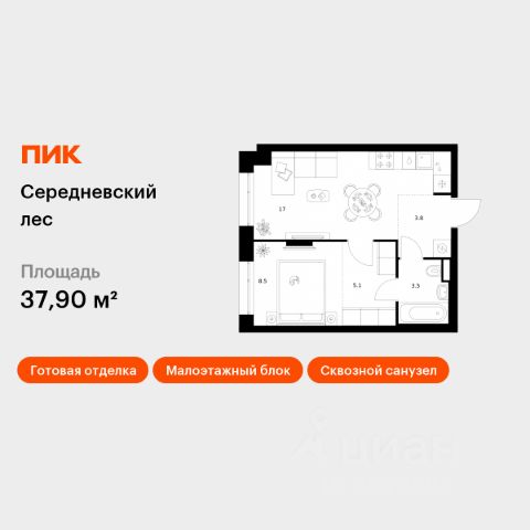 Продаётся 1-комн. квартира площадью 35,7 кв.м на 5 этаже 16 этажного дома (Корпус 2.1.3, Секция 3) проекта ПИК Середневский лес. Светлый просторный подъезд на уровне земли, функциональная планировка, большие окна, c отделкой. В 10 минутах на автомобиле находится станция метро "Внуково", а в 15 минутах — станции "Филатов Луг" и "Саларьево". От них до центра Москвы всего 3540 минут. На рейсовом автобусе от жилого квартала до метро "Филатов Луг" — 20 минут. На территории "Середневского леса" появилось общественное пространство с игровыми площадками, местами для отдыха, пешеходными маршрутами и велопарковкой — для прогулок, отдыха и встреч жителей квартала. Также внутри жилого квартала уже открыта школа на 1100 мест и детский сад для 325 малышей. В дальнейшем откроется ещё один сад для 340 детей. Артикул 1037922 (Застройщик ООО "Специализированный застройщик Середнево")