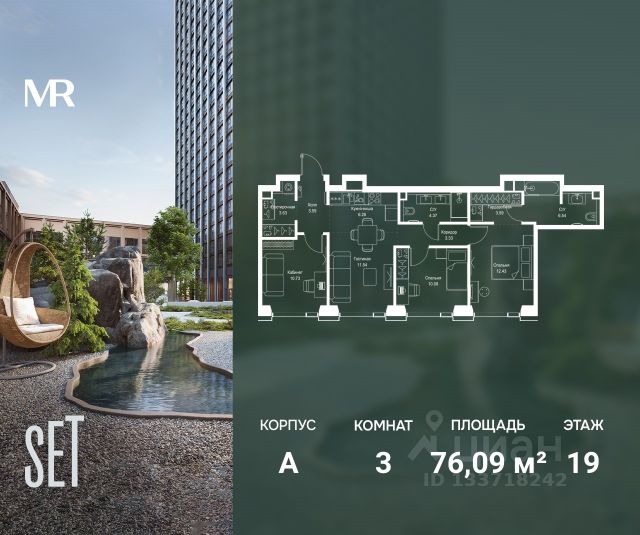 Прямая продажа от застройщика. В ЖК SET продается 1-комнатная квартира площадью 31.20 м², расположенная в корпусе 3, на 2 этаже 45 этажного дома. SET имеет стратегически выгодное расположение в ЗАО, в районе с большой историей и блестящим будущим: между природной зоной долины реки Сетунь и Кутузовским проспектом. В рамках возведения первой очереди предусмотрено три корпуса высотой 18, 45 и 59 этажей. На верхних этажах спроектированы общедоступные смотровые площадки с панорамным обзором на центр столицы. Преимущества проекта: • Функциональные планировочные решения • Контроль проникновения через входную дверь • Система управления освещением и температурой в квартире • Система защиты от протечек с функцией перекрытия воды • Вход в подъезд по биометрическим считывателям Face ID • Скоростные лифты • Двухуровневый подземный охраняемый паркинг на 495 машино-мест Застройка SET включает в себя не только жилые корпуса, но и инфраструктурные объекты. Все необходимое для повседневного комфорта будет расположено в шаговой доступности: • Фитнес-клуб с бассейном • Ведущая городская школа, детский сад и школа искусств • Центр культуры и досуга • Медицинский центр • Кафе и рестораны Расположение комплекса: Пешком: • Метро "Давыдково" - 17 минут • Парк "Долина реки Сетунь" - 3 минуты • Открытие новых станций метро в шаговой доступности в будущем Инфраструктура: Разнообразить свой день резиденты VEER смогут также проводя больше времени на свежем воздухе. Двор разделен на 4 зоны разных эмоций и действий, которые пересечены и соединены веерными прогулочными маршрутами: • Спортивная площадка устроена в глубине ""Кленовой рощи"" • В ""Чайном домике"" будет создан навес с утеплением для отдыха в любую погоду • Площадки для детей воплотятся в ""Волшебный лес"" с цветами, зеркалами и световым дизайном • ""Центральная площадь"" устроена у водного оазиса живописного пруда. " На машине: • "Москва-Сити" - 15 минут • Садовое кольцо - 20 минут • ТЦ "Океания" - 8 минут • ТЦ "Времена года" - 13 минут • Сколково - 12 минут • Гребной канал - 17 минут Компания MR предлагает своим клиентам специальные условия приобретения квартир в рамках программ ипотечного кредитования от банков-партнеров.