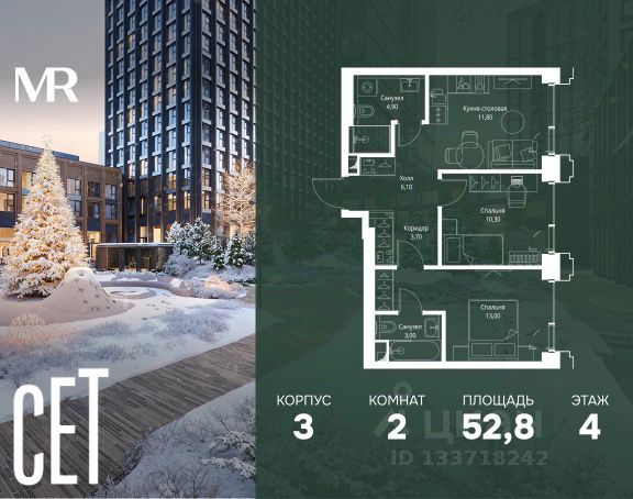 Прямая продажа от застройщика. В ЖК Сет продается 2-комнатная квартира площадью 51.28 м², расположенная в корпусе А, на 31 этаже 52 этажного дома. Сет имеет стратегически выгодное расположение в ЗАО, в районе с большой историей и блестящим будущим: между природной зоной долины реки Сетунь и Кутузовским проспектом. В рамках возведения первой очереди предусмотрено три корпуса высотой 18, 45 и 59 этажей. На верхних этажах спроектированы общедоступные смотровые площадки с панорамным обзором на центр столицы. Преимущества проекта: • Функциональные планировочные решения • Контроль проникновения через входную дверь • Система управления освещением и температурой в квартире • Система защиты от протечек с функцией перекрытия воды • Вход в подъезд по биометрическим считывателям Face ID • Скоростные лифты • Двухуровневый подземный охраняемый паркинг на 495 машино-мест Застройка Сет включает в себя не только жилые корпуса, но и инфраструктурные объекты. Все необходимое для повседневного комфорта будет расположено в шаговой доступности: • Фитнес-Клуб с бассейном • Ведущая городская школа, детский сад и школа искусств • Центр культуры и досуга • Медицинский центр • Кафе и рестораны Расположение комплекса: Пешком: • Метро "Давыдково" - 17 минут • Парк "Долина реки Сетунь" - 3 минуты • Открытие новых станций метро в шаговой доступности в будущем Инфраструктура: Разнообразить свой день резиденты Веер смогут также проводя больше времени на свежем воздухе. Двор разделен на 4 зоны разных эмоций и действий, которые пересечены и соединены веерными прогулочными маршрутами: • Спортивная площадка устроена в глубине ""Кленовой рощи"" • В ""Чайном домике"" будет создан навес с утеплением для отдыха в любую погоду • Площадки для детей воплотятся в ""Волшебный лес"" с цветами, зеркалами и световым дизайном • ""Центральная площадь"" устроена у водного оазиса живописного пруда. На машине: • "Москва-Сити" - 15 минут • Садовое кольцо - 20 минут • ТЦ "Океания" - 8 минут • ТЦ "Времена года" - 13 минут • Сколково - 12 минут • Гребной канал - 17 минут Компания MR предлагает своим клиентам специальные условия приобретения квартир в рамках программ ипотечного кредитования от банков-партнеров.
