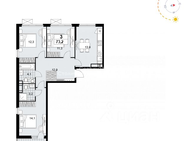 Расположена на 14 этаже 14-этажного дома.